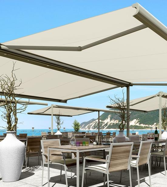 Non parliamo solo di benessere fisico, ma di un’atmosfera rilassante e un design unico, per offrire ai vostri ospiti protezione dal sole e dagli agenti atmosferici, per ampliare lo spazio vivibile e soddisfare le esigenze di copertura per plateatici, dehor, pergotende e tende di grandi dimensioni. Tutti i nostri prodotti sono personalizzabili nei tessuti e nei colori per integrarsi in perfetta armonia con l'ambiente circostante e negli accessori, con la possibilità di aggiungere automazioni, controllo remoto e illuminazione d’ambiente.